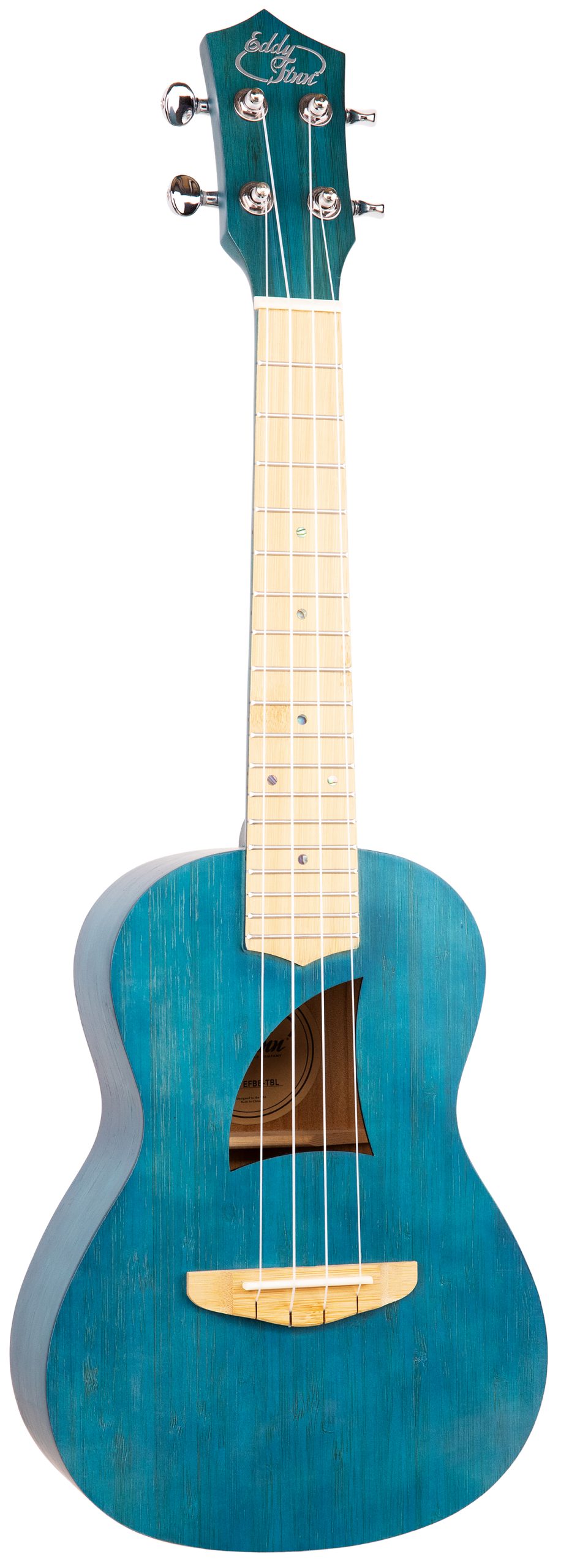 EDDY FINN BAMBOO BEACH UKULELE WITH GIG BAG, TRANSPARENT BLUE BAMBOO TOP/BACK/SIDES, FINGERBOARD, & BRIDGE