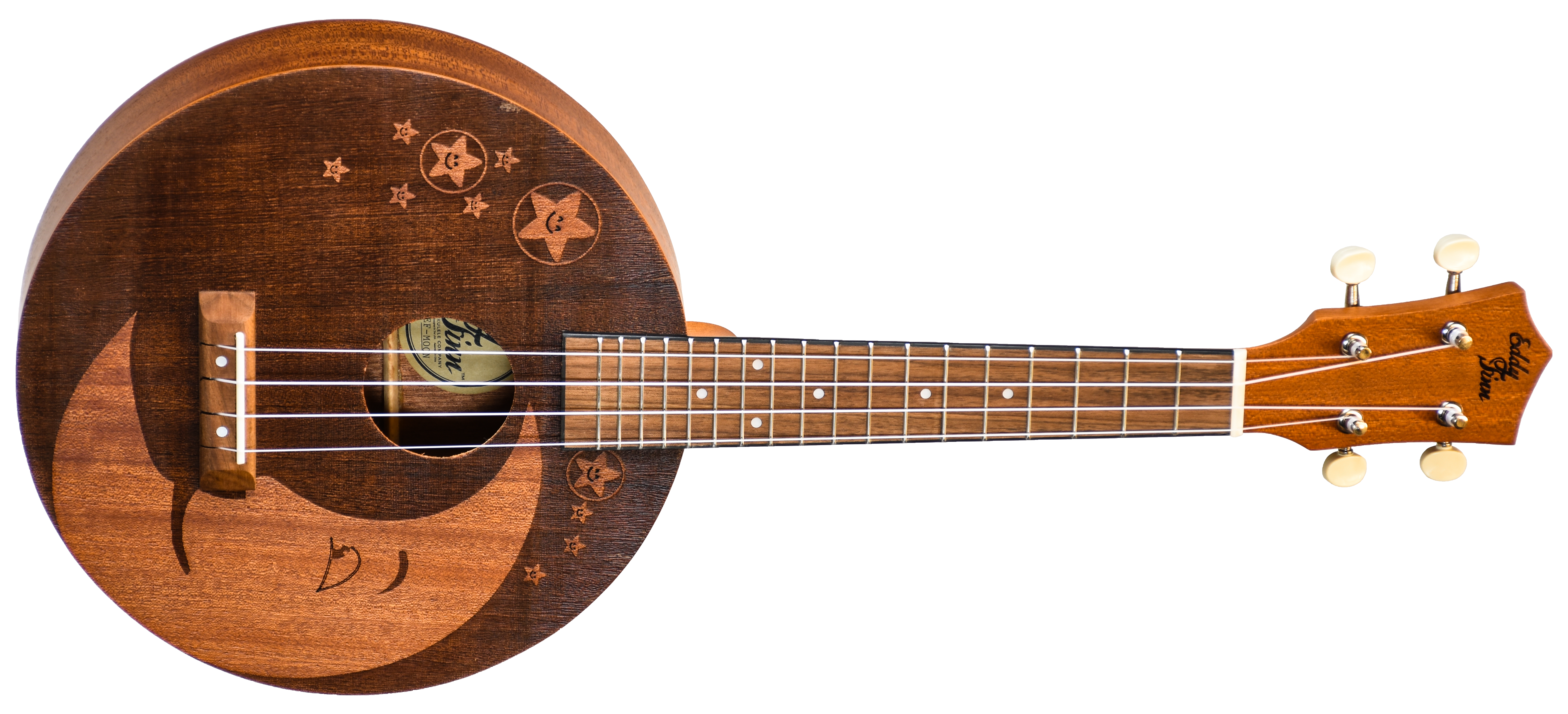 EDDY FINN MOON & STARS ROUND BODY UKE, CONCERT TUNING MAHOGANY TOP/BACK/SIDES, OPEN MATTE FINISH W/BAG