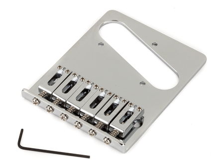 FENDER 6-SADDLE STANDARD TELECASTER BRIDGE ASSEMBLY, CHROME USED WITH MOST STANDARD TELE MODELS BUILT FROM 2004-PRESENT