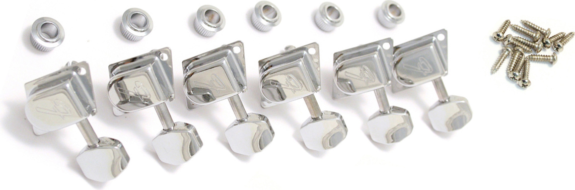 FENDER ’70’s “F” STYLE STRATOCASTER/TELECASTER TUNING MACHINES CHROME, SET OF 6