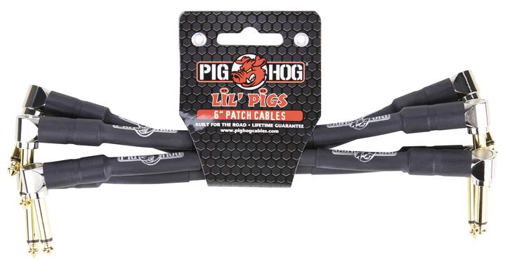 PIG HOG LIL’ PIGS 6″ PATCH CABLES, BLACK, 4PC
