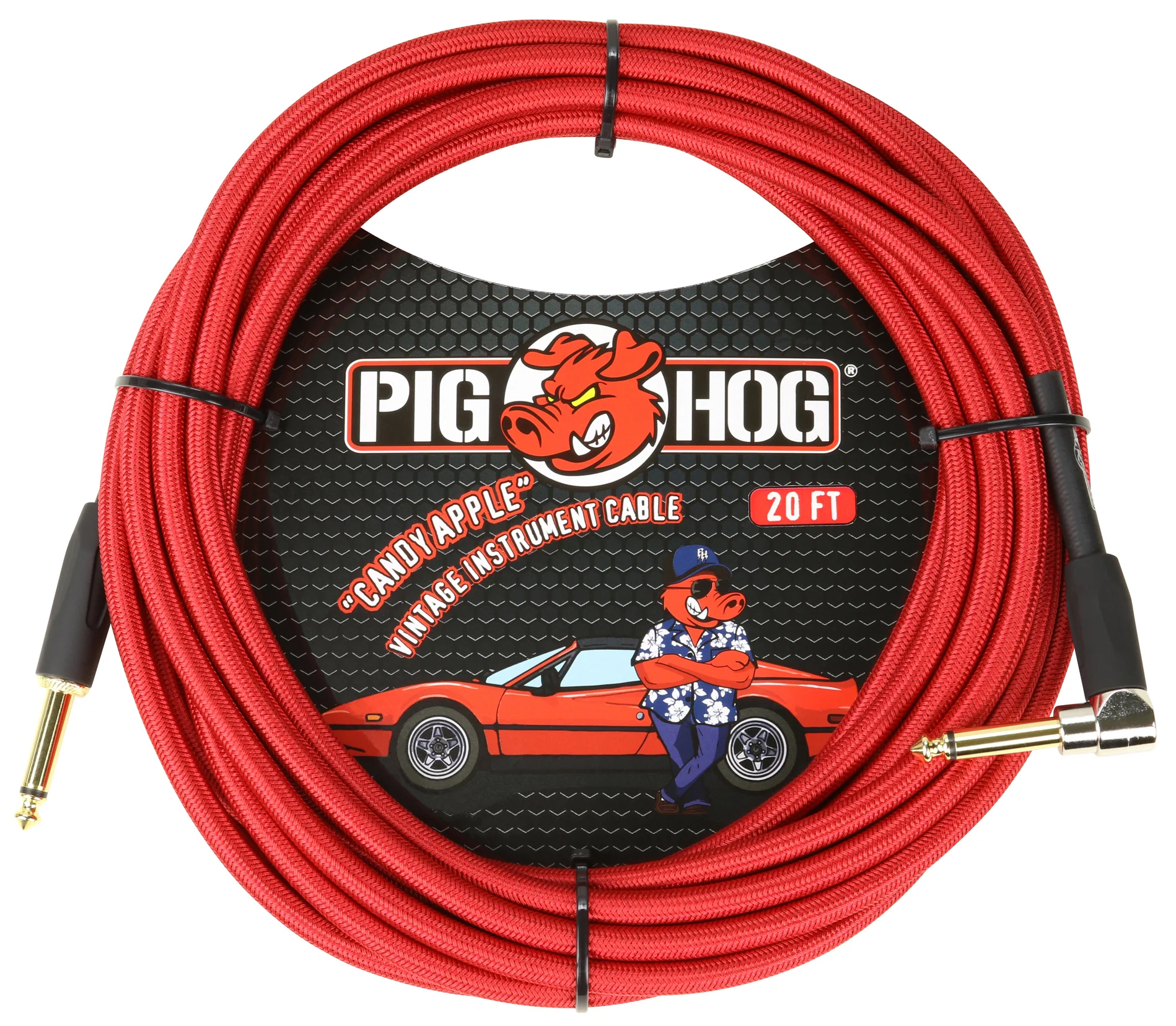 PIG HOG VINTAGE SERIES INSTRUMENT CABLE, 20FT, CANDY APPLE RED